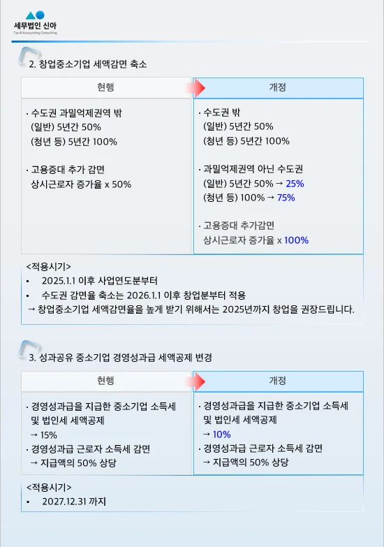 창업중소기업 세액감면의 축소도 주의깊게 살펴볼 내용입니다.